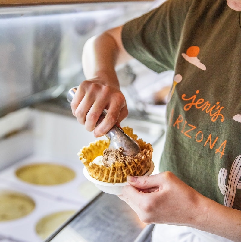 From the taste (and scent) of freshly made waffle cones to the art and design, every detail in a Jeni’s scoop shop is there for a reason—to enhance the experience of eating our ice cream. At the heart of it all are passionate team members who bring the experience to life with flavor knowledge and warm service. Whether a first-time guest or a lifelong fan, Jeni’s scoop shops are a place where people come together and connect.