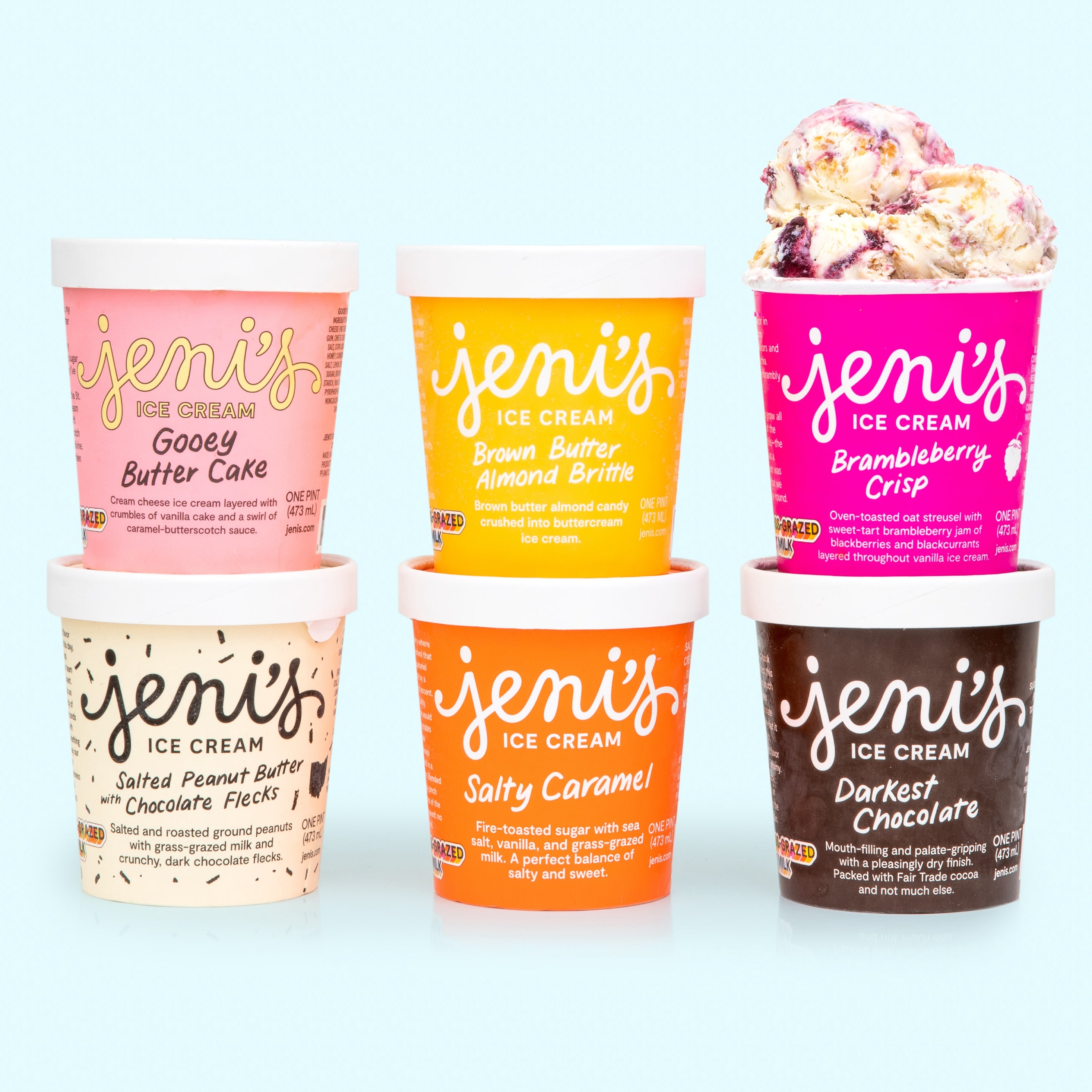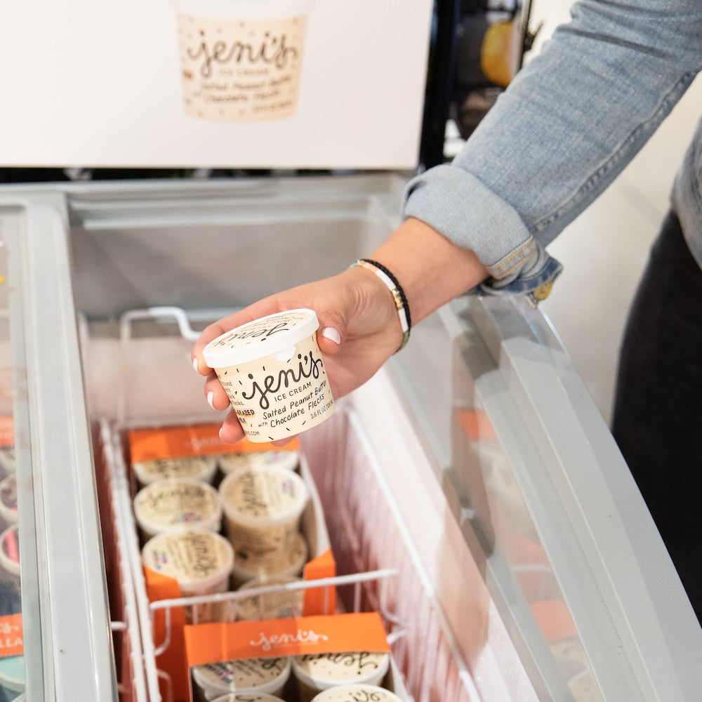 Jeni's pints (16 oz) and Street Treats (3.6 oz, ready-to-roam single servings with a spoon under the lid) are available to retailers in the United States.